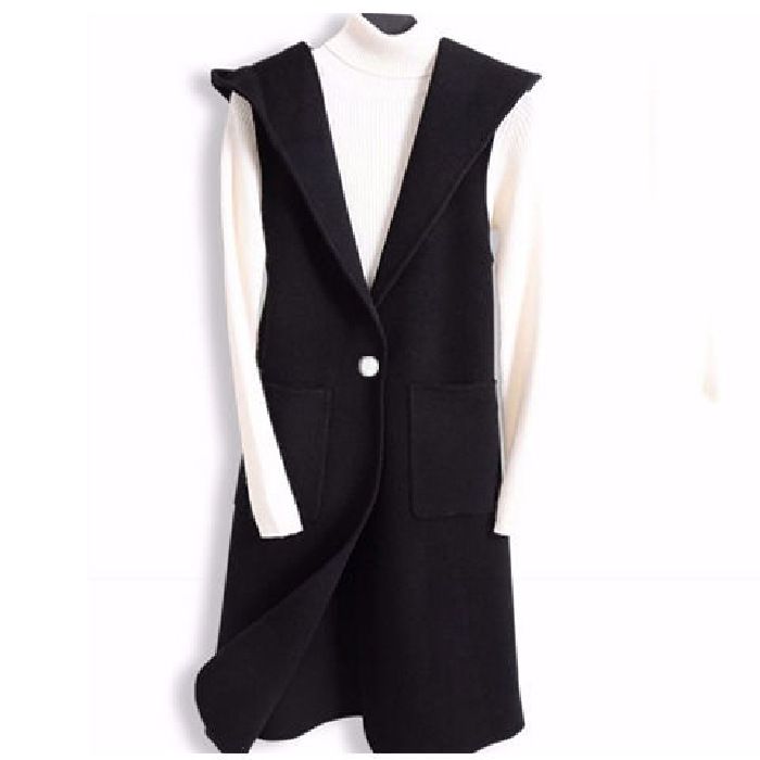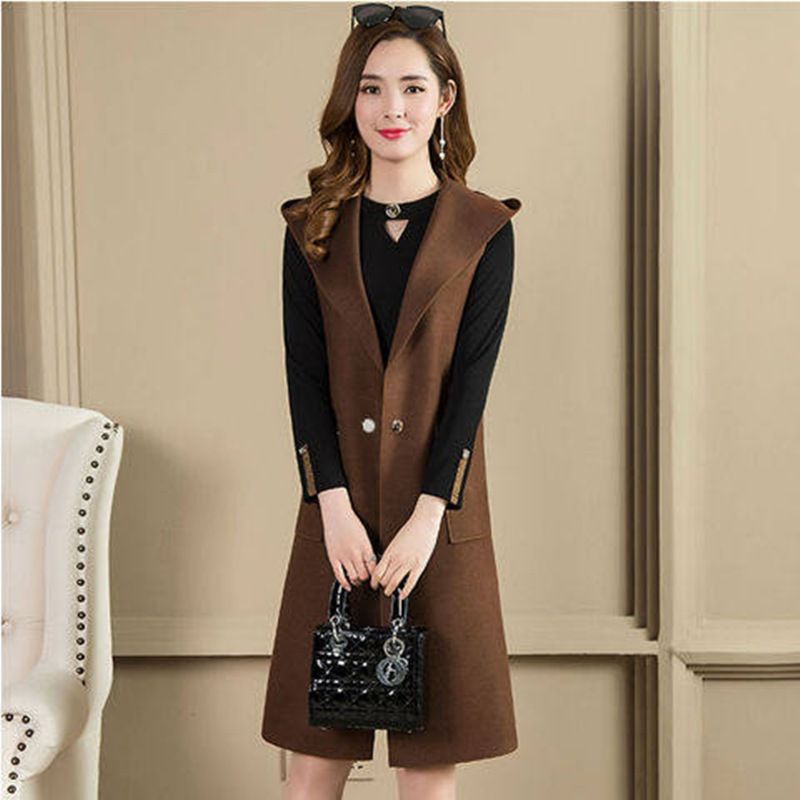 Autumn and winter women's new woolen coat hooded long vest mid-length coat